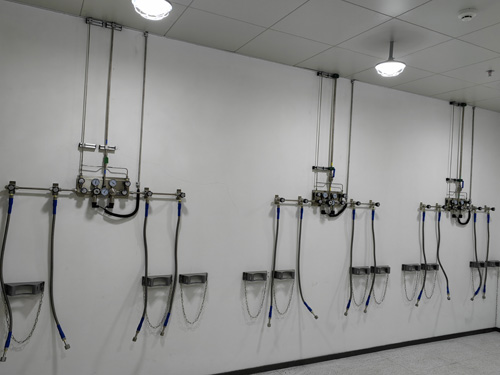1.氣瓶間內壓差上下調整顯示屏與實驗所空間內的氣路末端之間選擇使用SS316LBA管來進行銜接,管線內漆層光滑度為Ra<0.4umBA級管線。
